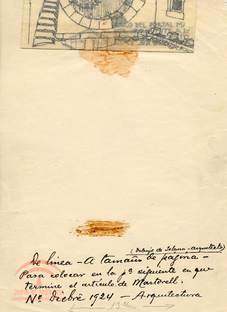 | Descripción: | Pegado sobre papel Tinta;18 x 12 cm. en hoja de 21 x 16 cm.;Papel vegetal;Original Procede del Legajo 535/ 3 del Archivo Histórico: "Dibujos de arquitectura, de Torres Balbás y otros (s.f.)" Signatura antigua de base de datos de Catalogo Mapas Dibujos del Archivo Historico Nº: 1623 Digitalizado Anotación para publicación |