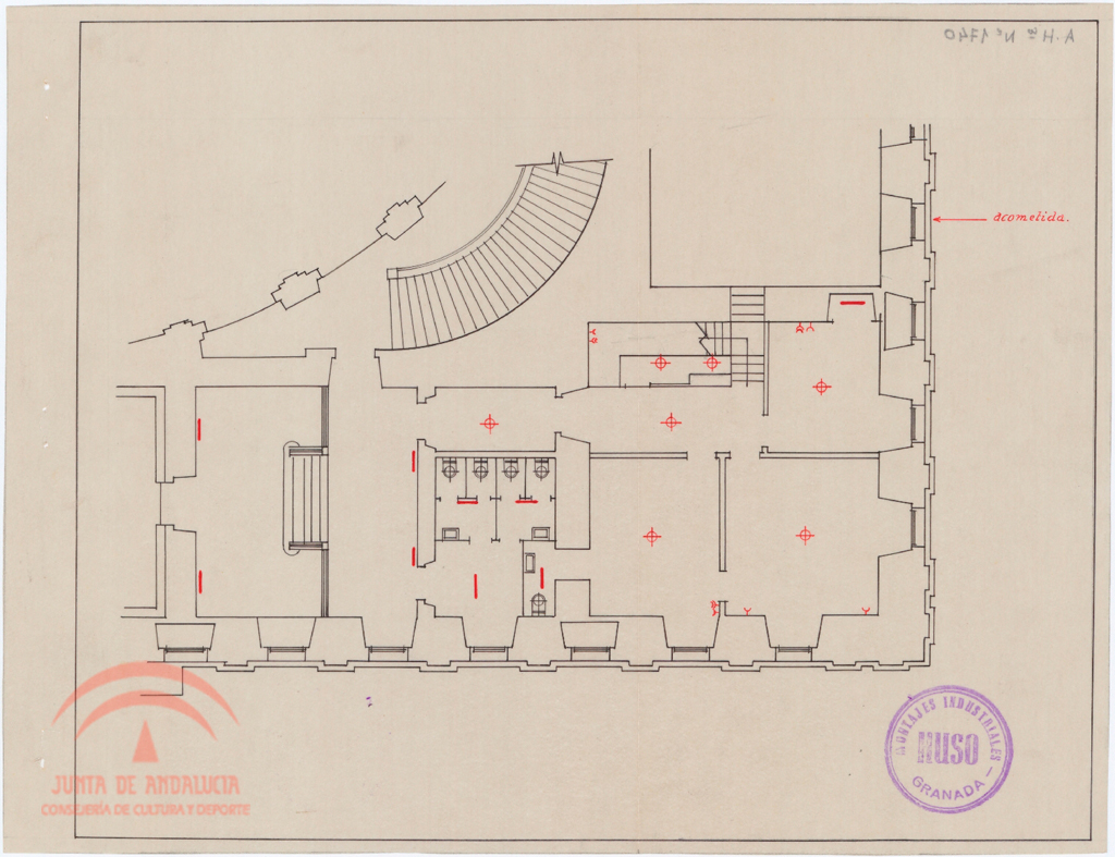 | Título: | Palacio de Carlos V. Planta parcial con indicación de instalación eléctrica |