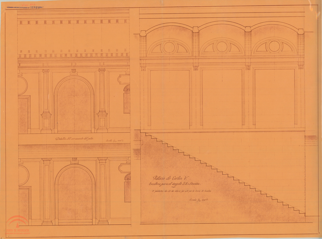 | Título: | "Palacio de Carlos V. Escalera para el ángulo S.E. Sección" |