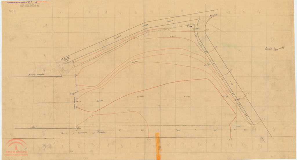 | Resumen: | Generalife. Jardines Nuevos y sector del futuro Teatro. Planta |