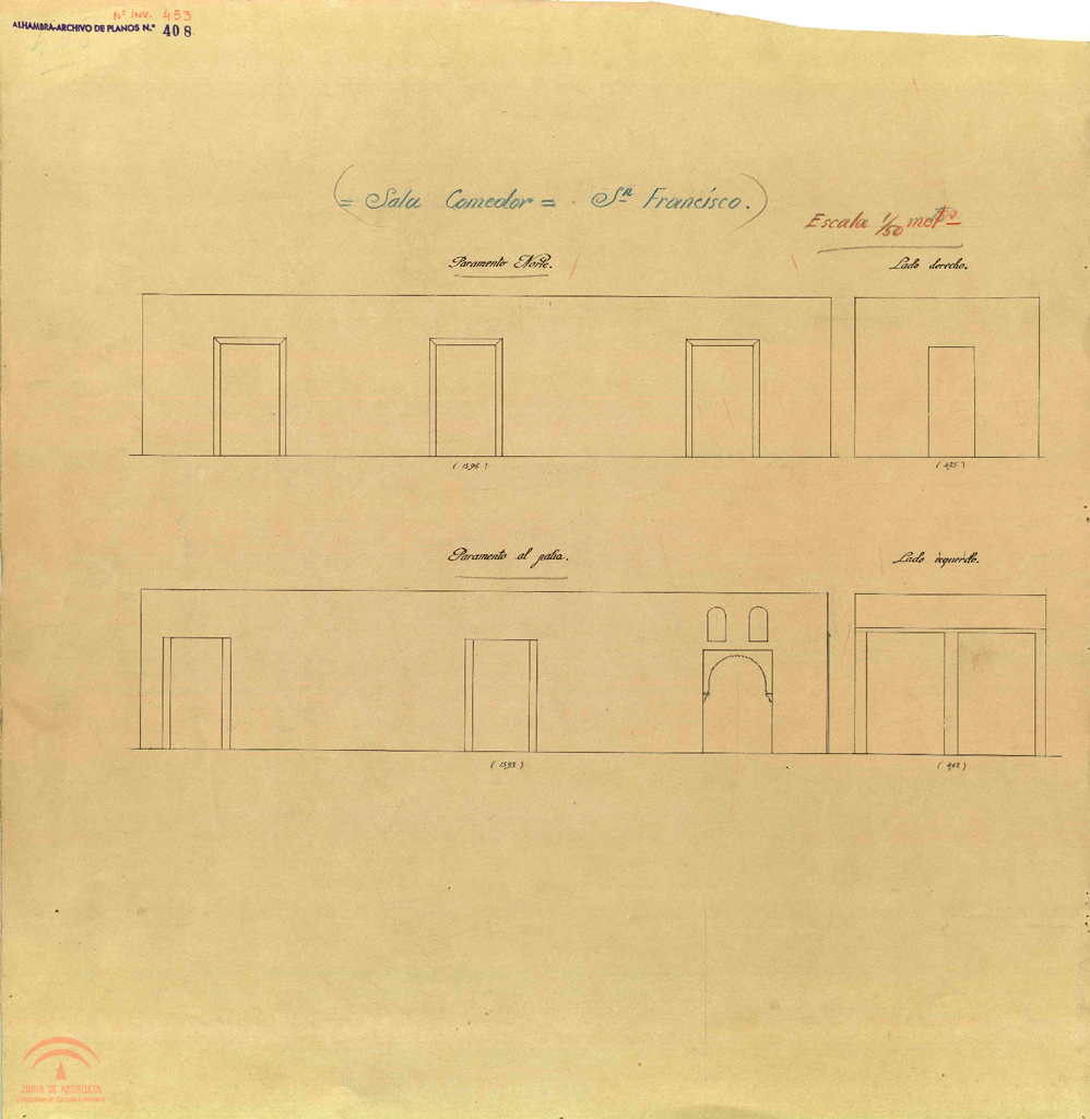 | Resumen: | Alhambra. Convento de San Francisco. Sala de comedor. Alzados Norte y al patio |