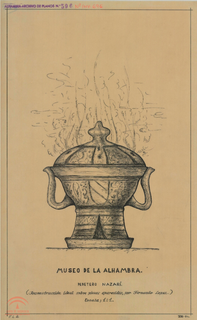 | dc.title | "Museo de la Alhambra. Pebetero nazarí. Reconstrucción ideal sobre piezas aparecidas, por Fernando López" | es_ES |