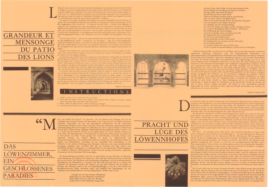| Descripción: | Copia, impreso a color, papel, 700x500 mm y 350x500 mm. Signatura antigua de base de datos de Catalogo Mapas Dibujos del Archivo Historico Nº: 349 Existen 2 copias con las signaturas antiguas Nª: 350; 351 1 base (70 x 50 cm) y 5 láminas (35 x 50 cm) para el montaje con los distintos elementos. 3 hojas con instrucciones en distintos idiomas. Presentado en una carpeta de cartón |