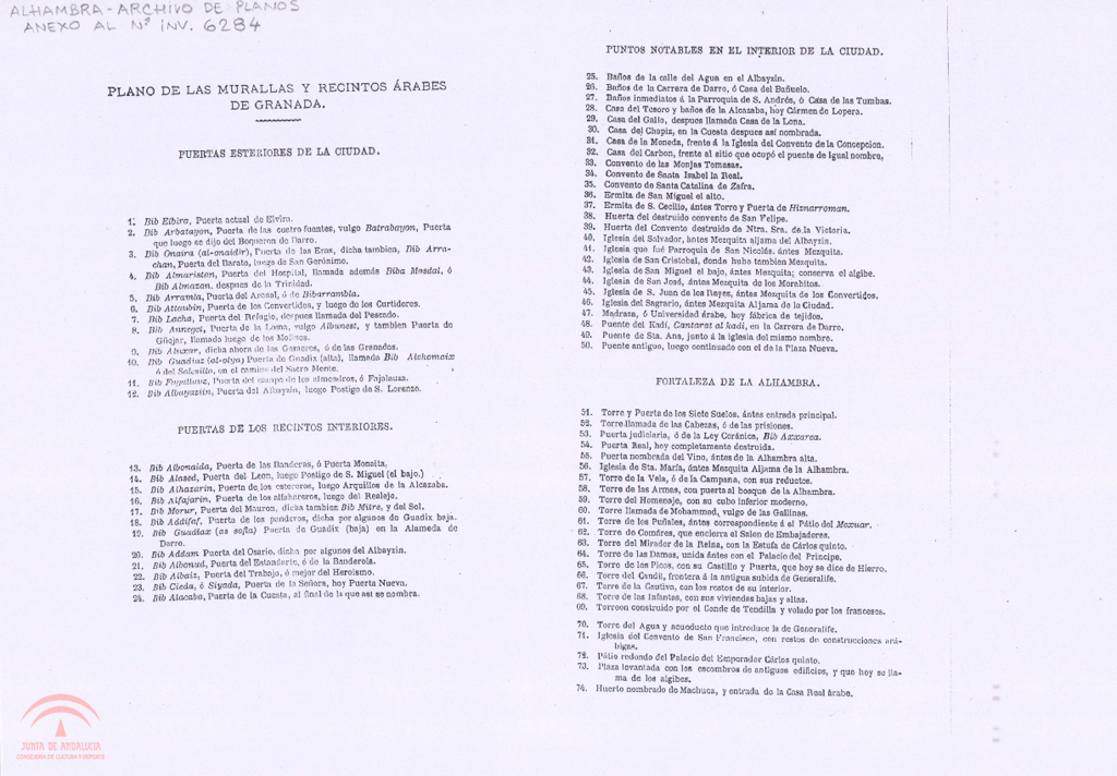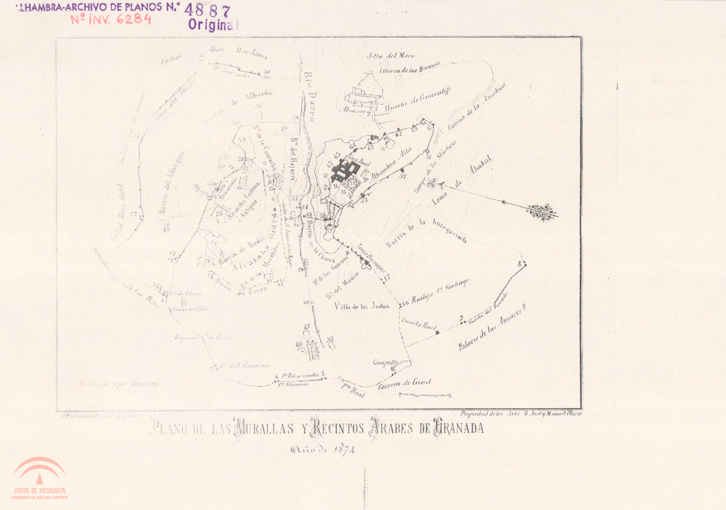 | Título: | Granada. Plano de las Murallas y recintos árabes (1874) |