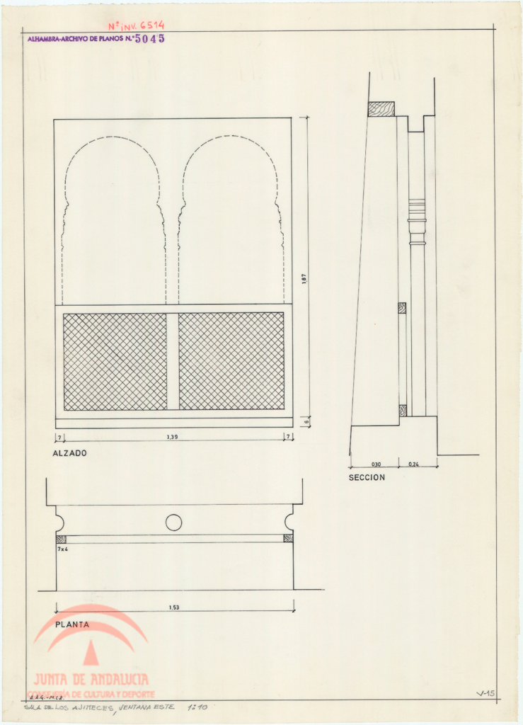 | Título: | Sala de los Ajimeces. Ventana Este. Ventana 15. Planta, alzado y sección |