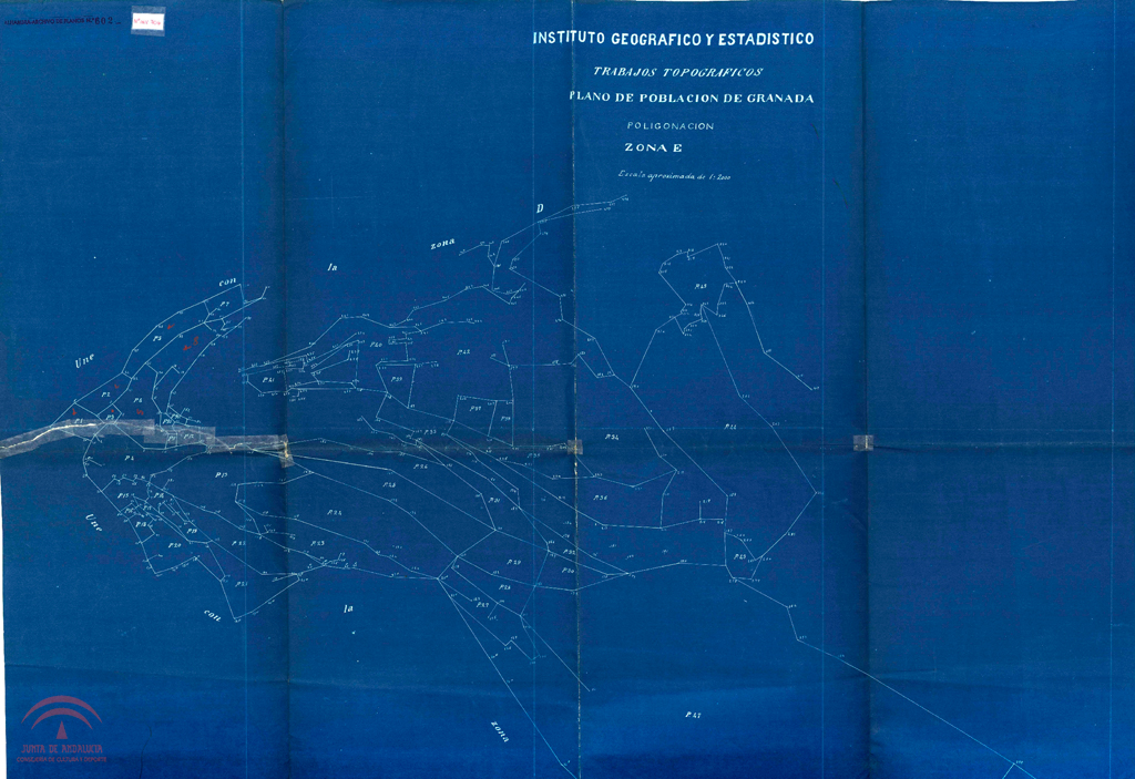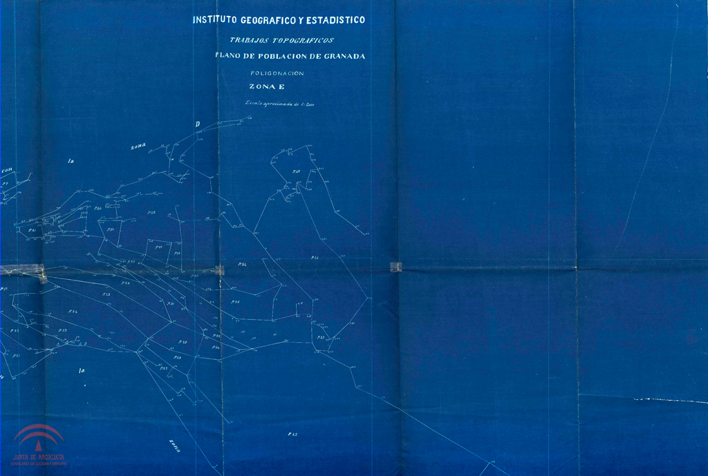 Título: "Instituto Geográfico y Estadístico. Trabajos topográficos. Plano de población de Granada. Poligonación. Zona E"