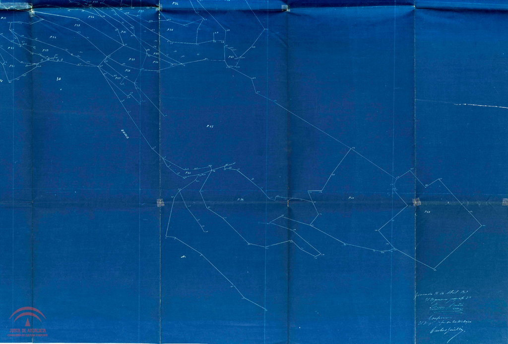 "Instituto Geográfico y Estadístico. Trabajos topográficos. Plano de población de Granada. Poligonación. Zona E"