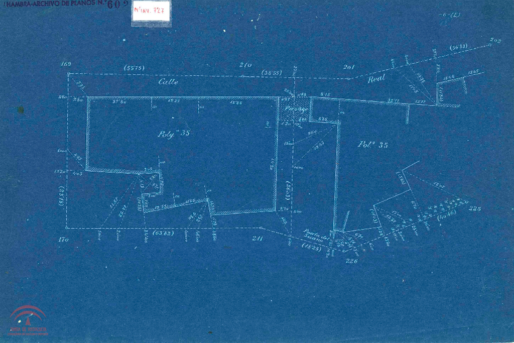 Descripción: Copia, papel, cianotipo, 22x32 cm., s.e. sectores: 7, 8Poligonación Zona Este del Plano General de GranadaNumero de plano de la oficina técnica del servicio de conservación: 602, (Alhambra-archivo de planos Nº 602) Digitalizado