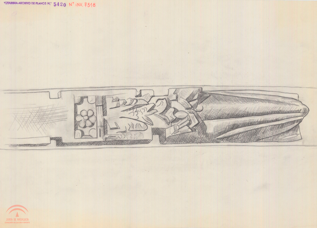 Título: Dibujos procedentes del Museo Hispano Musulmán. Canecillo. Alzado de la cara inferior (papo)