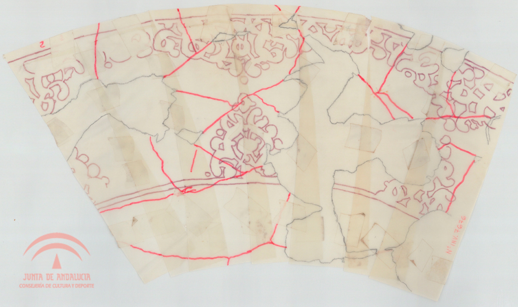 | Título: | Fragmentos (calcos) de la parte del hombro de un jarrón del tipo de la Alhambra en azul y dorado. Nº 2 |