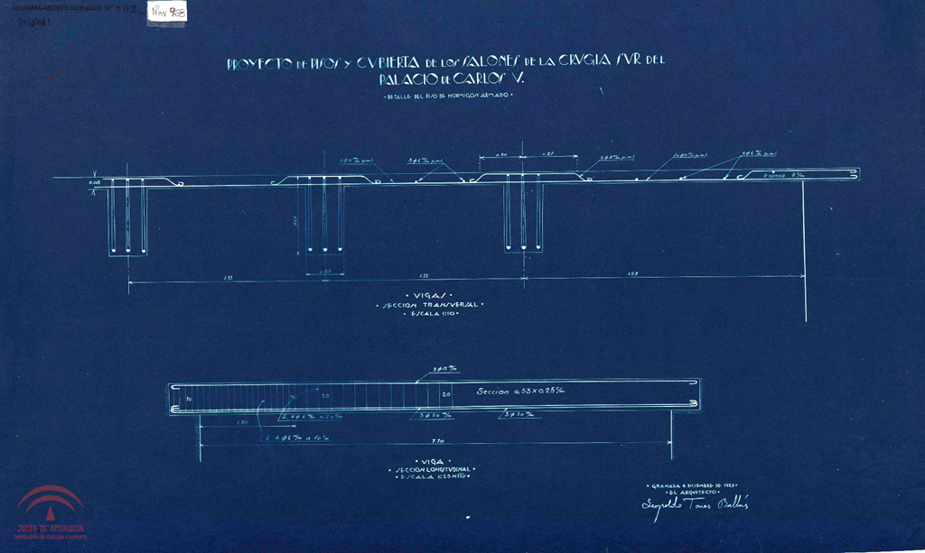 | Título: | "Proyecto de pisos y cubierta de los salones de la crujía Sur del Palacio de Carlos V. Detalle del piso de hormigón armado" |
