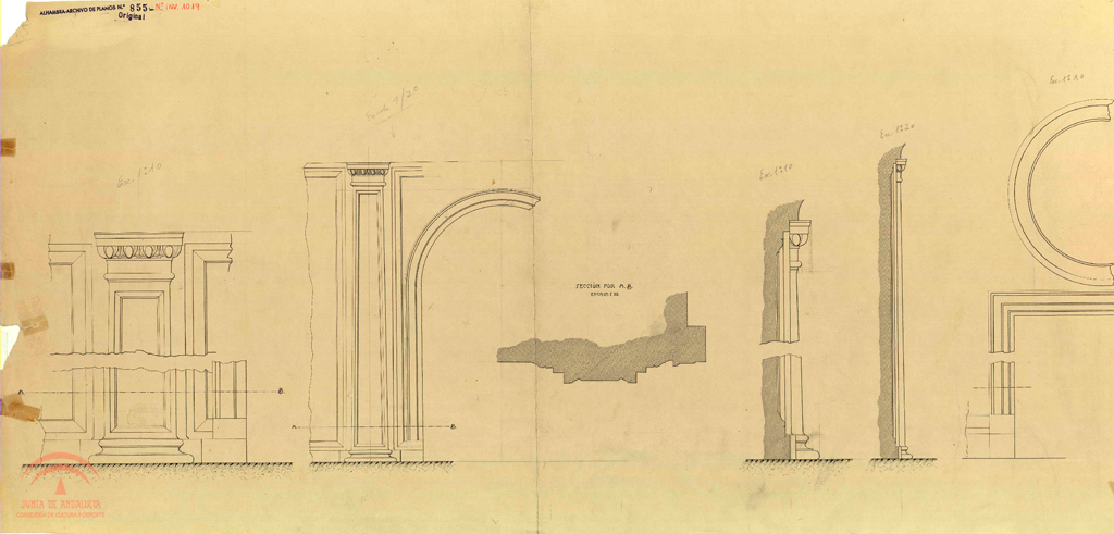 | Resumen: | Palacio de Carlos V. Detalles de la pared circular: pilastras, óculos y otros elementos. Perfil, alzado y sección |