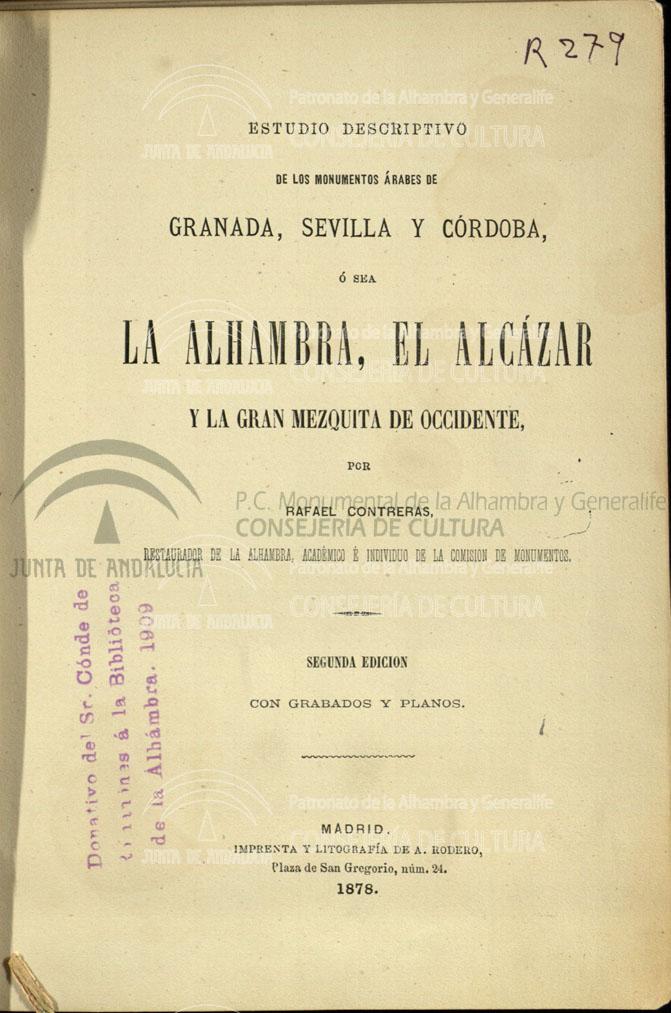 | Título: | Estudio descriptivo de los monumentos árabes de Granada, Sevilla y Córdoba, ó sea La Alhambra, el Alcázar y la gran Mezquita de Occidente |