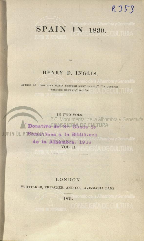 | Descripción: | Contiene exlibris 'Sub robore virtus' El volumen II tiene referencias a la Alhambra y Granada Contiene Vol. I. - Vol. II Copia digital |