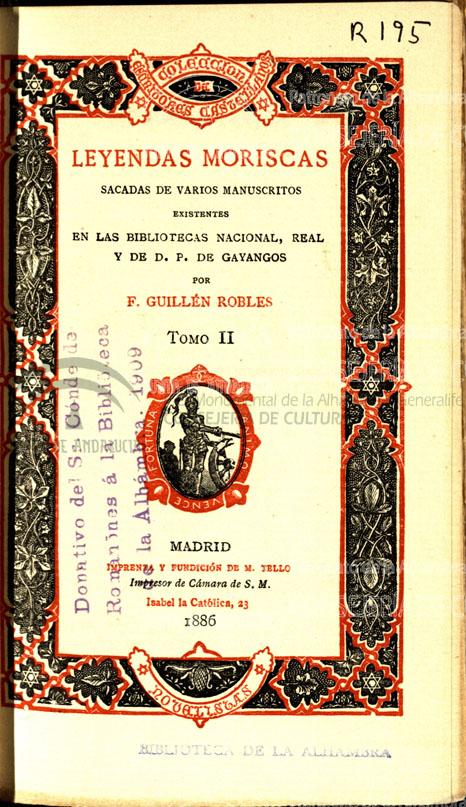 | Título: | Leyendas moriscas : sacadas de varios manuscritos existentes en la Bibliotecas Nacionales, Real y de D.P. de Gayangos |
