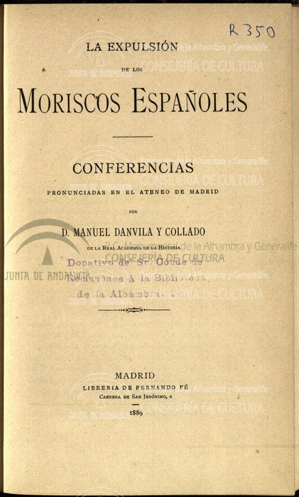 Título: La expulsión de los moriscos españoles : conferencias pronunciadas en el Ateneo de Madrid