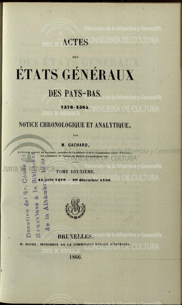 | Título: | Actes des États Généraux des Pays-Bas: 1576-1585 : notice chronologique et analytique |