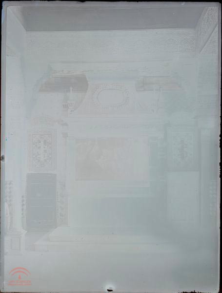 | Resumen: | Interior del Mexuar antes de su transformación en 1930 por Torres Balbás, habilitado por entonces como capilla. Primer de plano que presidía un testero con piezas de mármol de una chimenea renacentista que hoy se encuentra en el Palacio de Carlos V. |