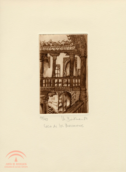 | Resumen: | Casa de los Mascarones en Granada, detalle del interior de Mechthild Brinkmann. Grabado 13/40. Pertenece a la obra "Patios árabes. Granada. MCMLXXXIV. Cinco patios granadinos vistos por una pintora alemana". |