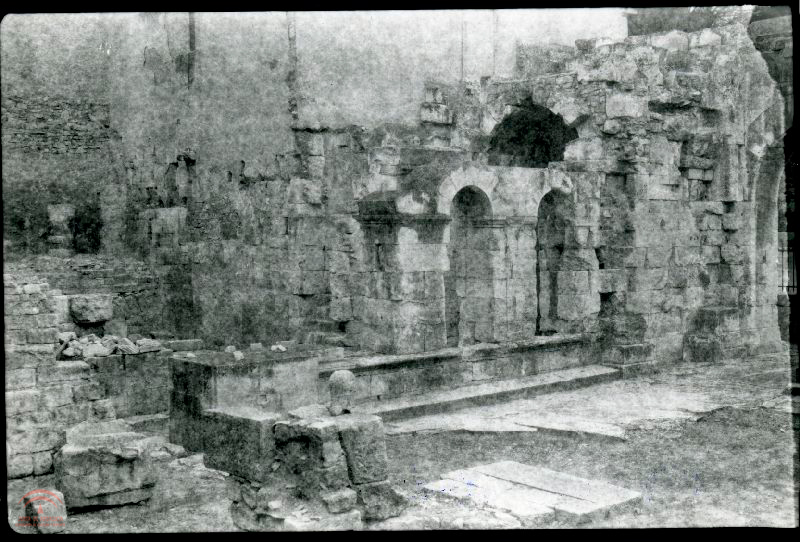 | Resumen: | Entre las ruinas se aprecian arcadas y columnas. Probablemente la puerta de Arles o Puerta de Augusto de Nimes, en Francia, vista desde atrás |