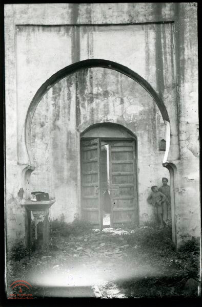 | Resumen: | Puerta de una iglesia mudéjar sevillana con arco de herradura destruida por un incendio, probablemente es San Julián destruida en un incendio en 1932 A la derecha dos chicos. |