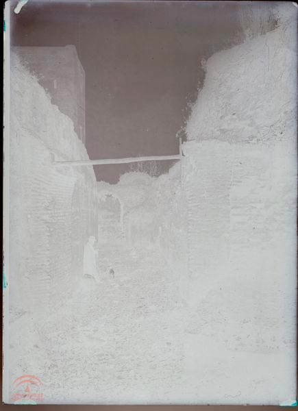 | Resumen: | Arco apuntalado en el adarve de las murallas de la Alhambra, con un hombre vestido de traje. |
