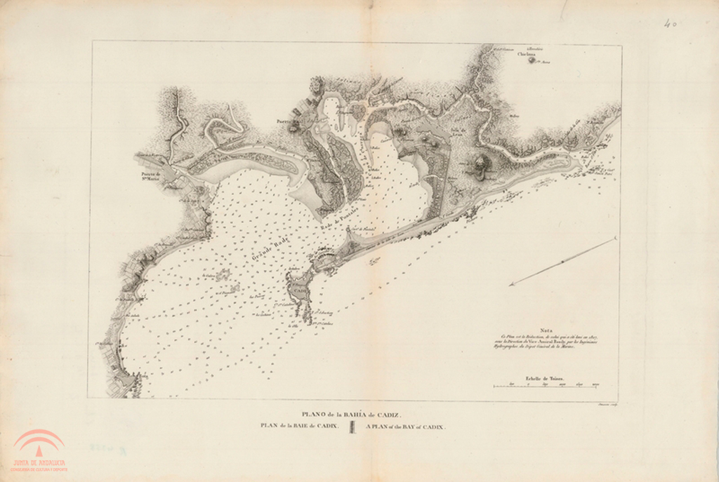 | Título: | Plano de la Bahía de Cádiz. Plan de la Baie de Cadix. A plan of the Bay of Cadix" [François] Jouanne sculp[sit]. |