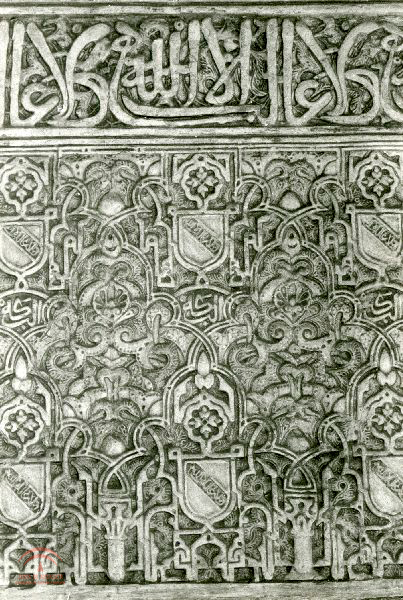 | Resumen: | Detalle de la decoración en yeserías con ornamentación vegetal, escudo nazarí y epigrama con escritura cursiva, del Patio del Cuarto Dorado al Patio de Arrayanes. |