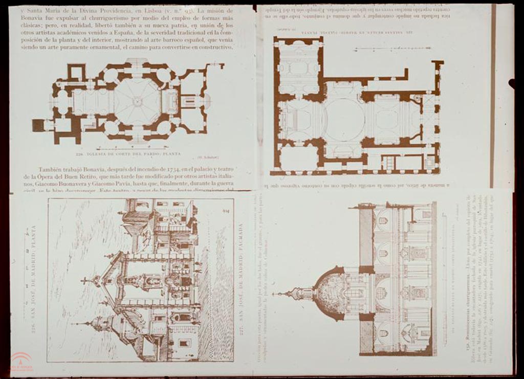 Resumen: Fotografías de láminas de un libro, de la Iglesia de San José y las Salesas Reales en Madrid y de la Iglesia del Pardo.