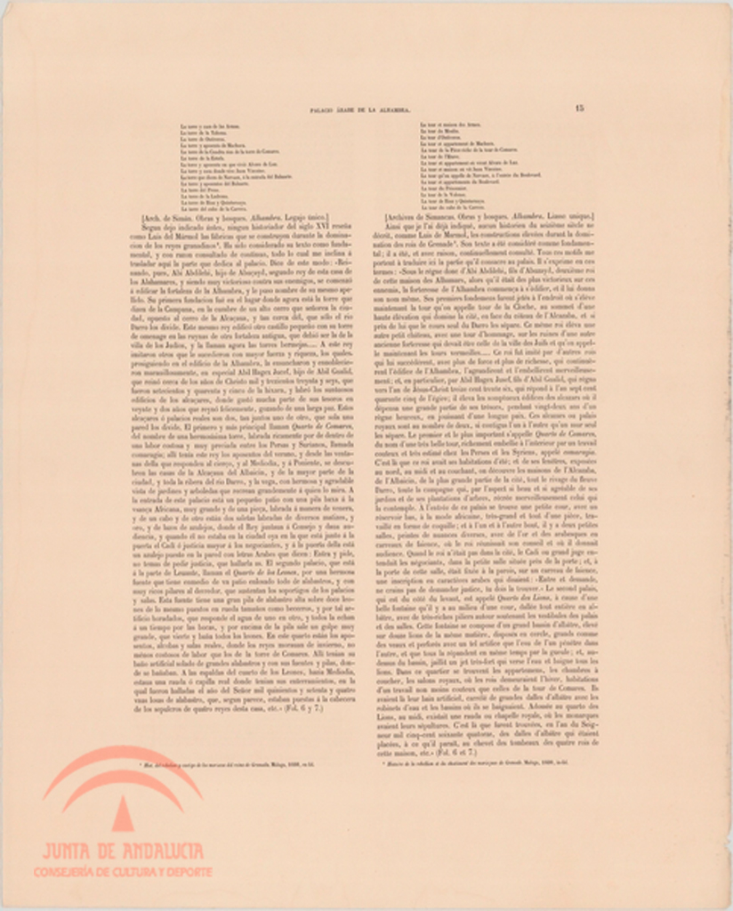 | Resumen: | Palacio Árabe de la Alhambra. Cornisa y ventana del centro en fachada de la Mezquita (Oratorio del Partal). F. Contreras dib[ujó]., L. Iranzo grab[ó]. Del libro "Monumentos Arquitectónicos de España. Provincia de Granada. Palacio Árabe de la Alhambra", Madrid, Imprenta y Calcografía Nacional (1859-1881) |