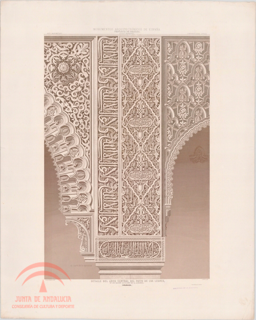 | Título: | Palacio Árabe de la Alhambra. Detalle del arco central del Patio de los Leones |