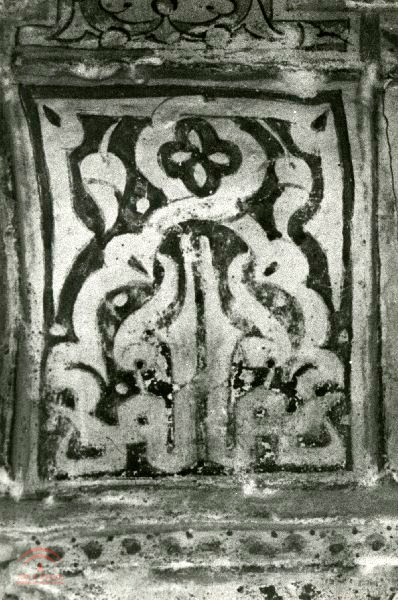 Resumen: Sala de embajadores, arco de entrada, detalle de la pintura mural y policromía