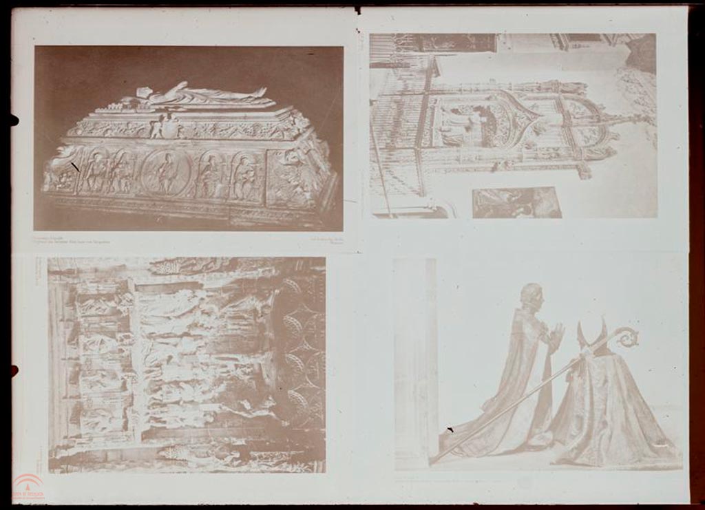 Resumen: Fotografía de un libro donde aparecen cuatro túmulos funerarios en las catedrales de Sevilla y Burgos