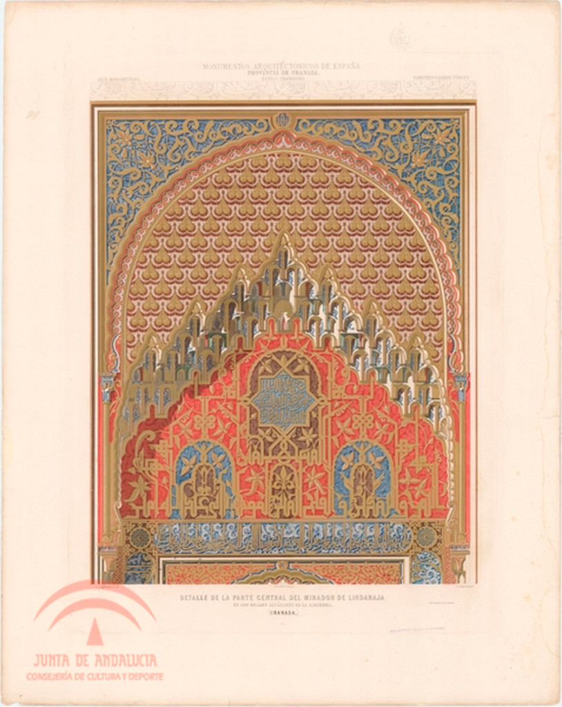 | Título: | Palacio Árabe de la Alhambra. Detalle de la parte central del Mirador de Lindaraja |