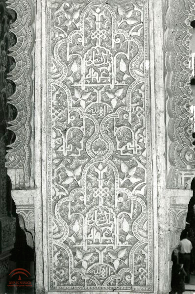 | dc.description.abstract | Paño decorativo entre tramos de arquería de la galería del patio de los leones, con motivos vegetales y escritura | es_ES |