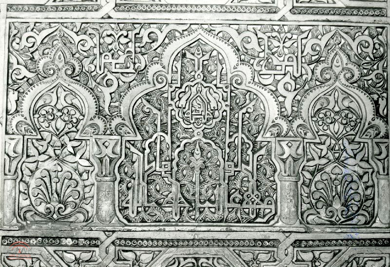 | Resumen: | Detalle de una cenefa de la sala de los abencerrajes, realizada en yeso y enmarcada entre columnillas con motivos florales, y elementos de escritura cufica |