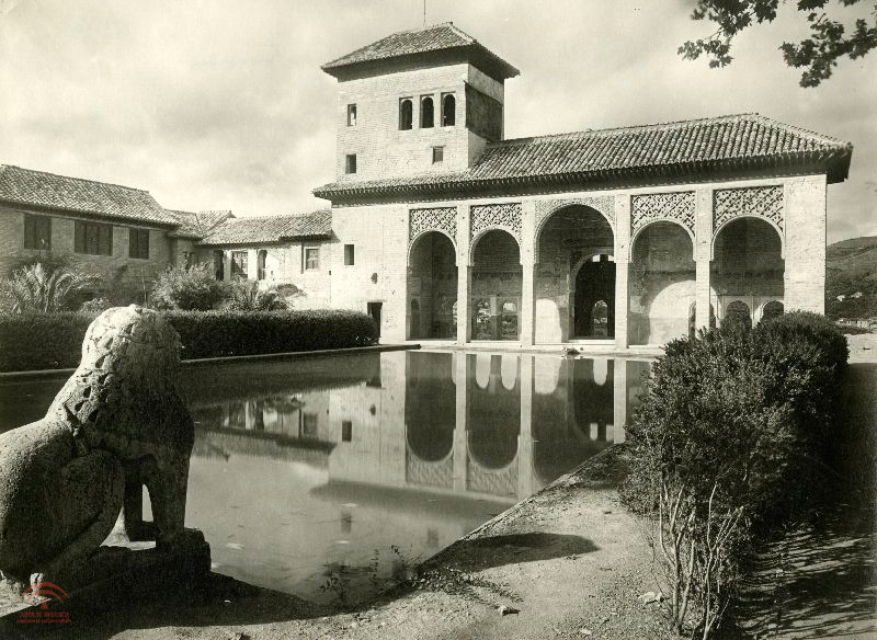 | Resumen: | Vista de El Partal y las casitas adyacentes restauradas, en primer término uno de los leones del maristan que antes estaban situadas en cada una de las esquinas del estanque y que hoy se exhiben en el Museo de la Alhambra. |