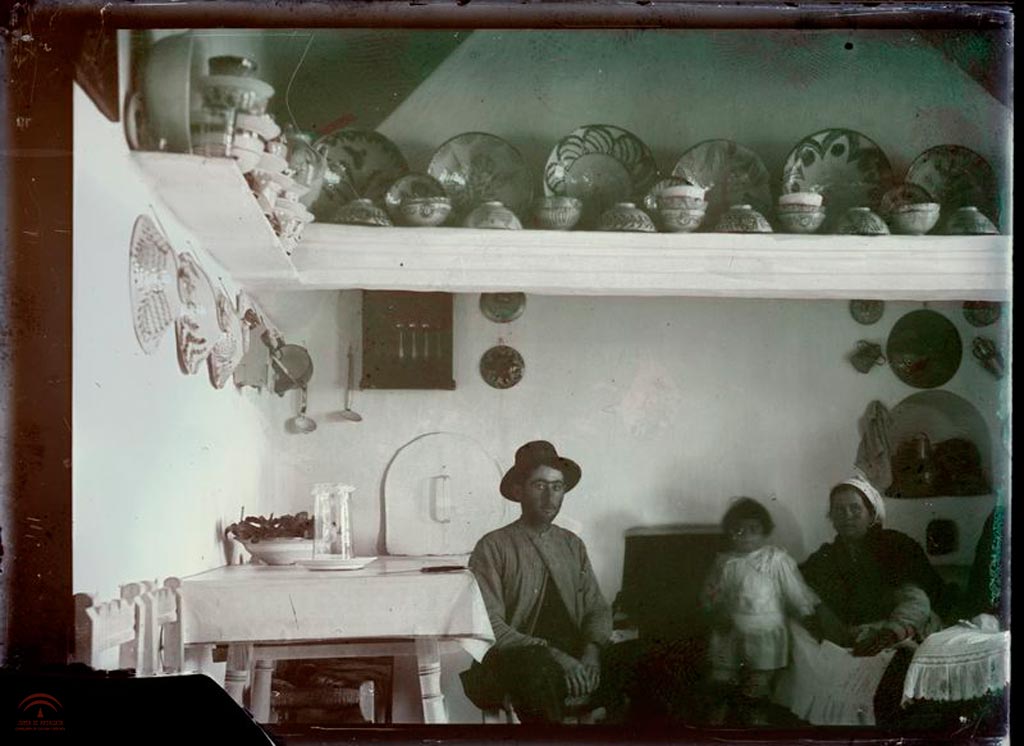 | Resumen: | Interior de una cocina. Destacan los objetos de cerámica y la presencia de 3 individuos sedentes, un hombre, tocado con sombrero, una mujer y un niño. |