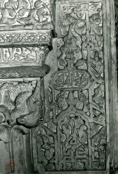 | Resumen: | Detalle de la decoración del arco de entrada a la alcoba extrema de la sala de los reyes, con un capitel adosado a la pared, con motivos vegetales, cartela epigráfica con escritura en cursiva, y la pared a la que esta adosado con decoración con motivos cúficos y vegetales |