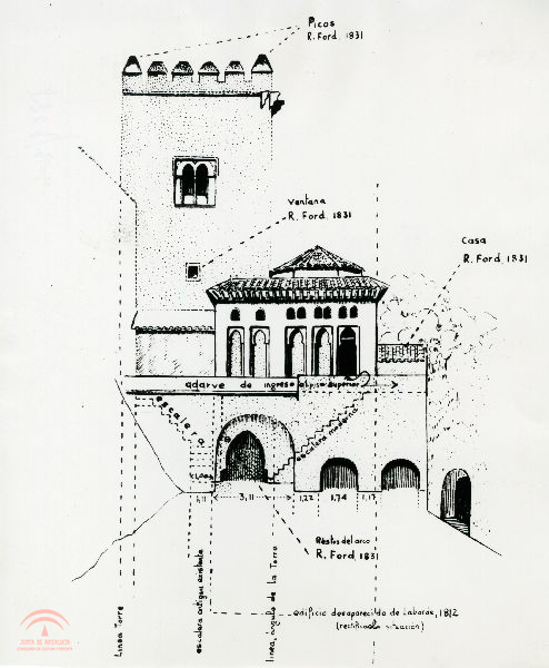 Descripción: 1 positivo en b/n 220 x 184 mmEn: Un problema arqueológico en la Alhambra. Cuadernos de la Alhambra, nº 5, 1969, figura 6. Basilio Pavón MaldonadoEn el reverso aparecen anotaciones a lápiz, " a su tamaño" lám. VII B. Pavón Contrarreplica y en bolígrafo azul Fig. 2 y 1809/8-4