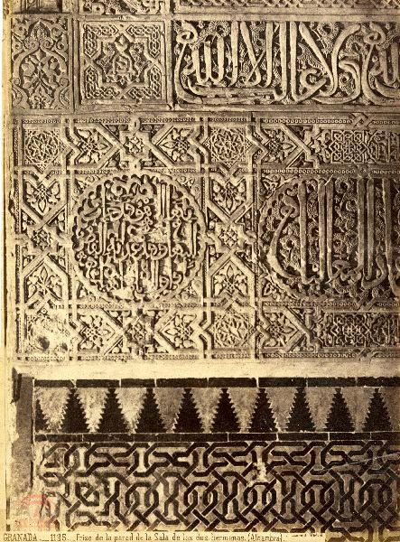Título: "Granada. 1125. Friso de la pared de la Sala de las dos hermanas. (Alhambra). J. Laurent. Madrid."