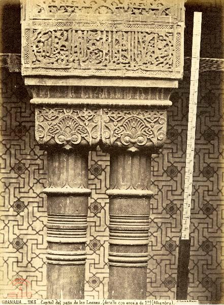| Título: | "Granada. 1163. Capitel del patio de los Leones. (detalle con escala de 1m.) (Alhambra). J. Laurent. Madrid." |