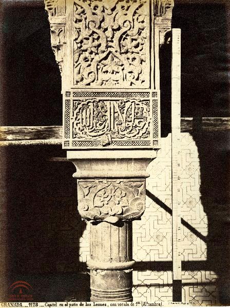 | Título: | "Granada. 1178. Capitel en el patio de los Leones, con escala de 1m. (Alhambra). J. Laurent. Madrid." |