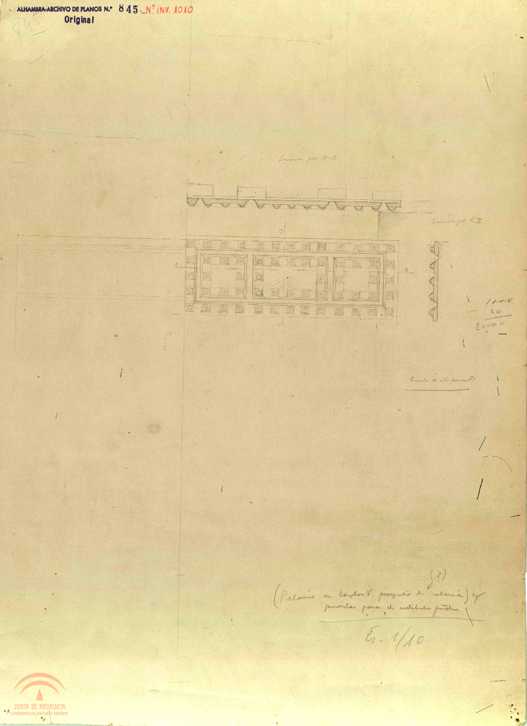 sector: 5 Número de plano de la oficina técnica del servicio de conservación: 845, (Alhambra-archivo de planos Nº 845) Digitalizado |