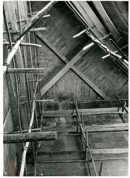 | Resumen: | Palacio de Carlos V. Interior, construcción de la escalera oeste del patio, con todo el andamiaje que se utilizó para la cubierta y construcción de esta escalera en la época de Prieto Moreno? |
