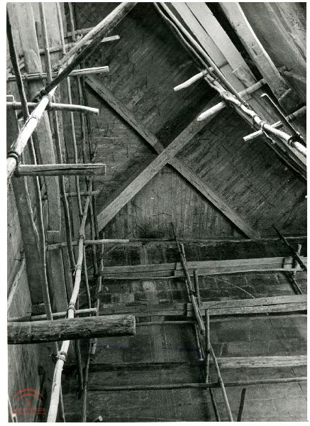 | Resumen: | Palacio de Carlos V. Interior, construcción de la escalera oeste del patio, con todo el andamiaje que se utilizó para la cubierta y construcción de esta escalera en la época de Prieto Moreno? |