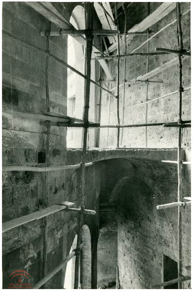 | Resumen: | Palacio de Carlos V. Interior, construcción de la escalera oeste del patio, con todo el andamiaje que se utilizó para la cubierta y construcción de esta escalera en la época de Prieto Moreno?. Detalle de unos de los arcos |