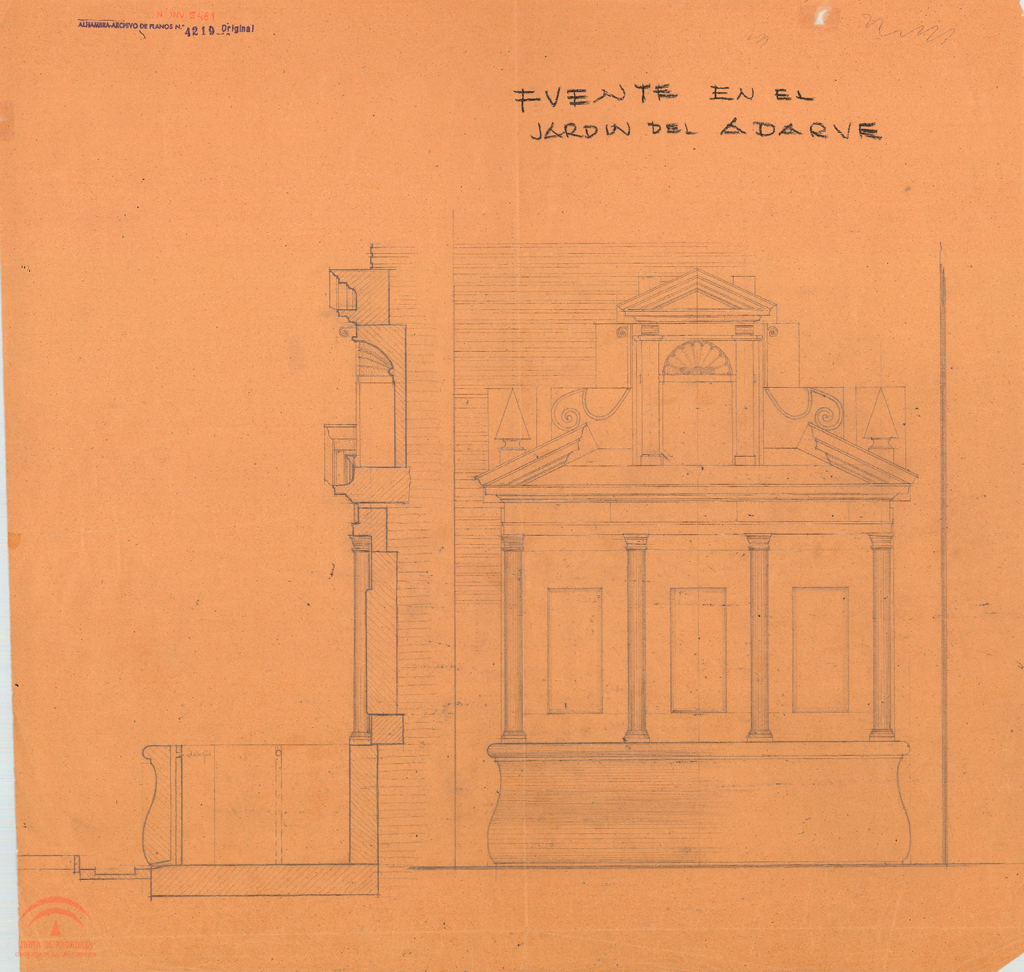 | dc.title | Alcazaba. Jardín de los Adarves. Fuente (pilar) del fondo. Alzado y sección | es_ES |