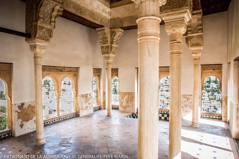 Formaba parte del Peinador de la Reina de la Alhambra y la parte inferior de las ventanas de la planta baja se pueden ver alizares iguales.
