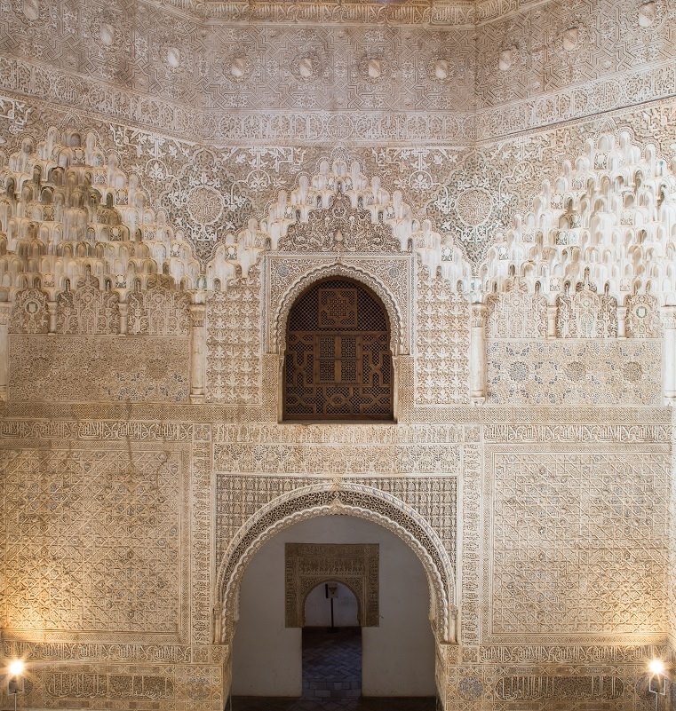 Muchas de las piezas que forman parte del museo provienen de lugares específicos y fácilmente identificables. Algunas provienen de edificios de la ciudad de Granada que aún se conservan; otras de espacios de la Alhambra en los que perviven decoraciones similares. Conocer la historia de estas piezas es también comprender sus orígenes, entenderlas como parte de una estructura mayor y ubicarlas en el espacio del que provienen. Esta celosía de Dos Hermanas, que se puede ver en la Sala V del Museo, formó parte de la sala de la Alhambra del mismo nombre.